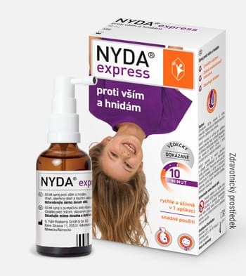 NYDA plus má hřebenový aplikátor, který usnadňuje nanesení do hustých nebo zacuchaných vlasů. Větší obsah balení kvůli hustším vlasům. Účinná látka je stejná jako u NYDA express.